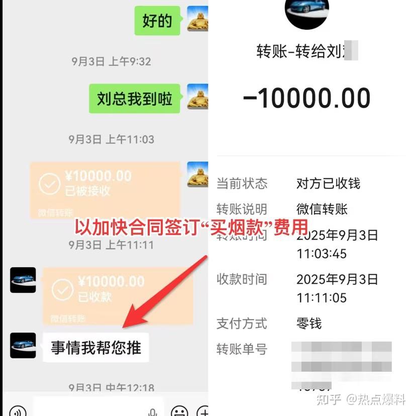 9月2日,刘某欢通过微信向赵先生发送合作协议,双方约定9月3日由赵先生前往海口签订正式协议。签约当天,刘某欢以"给公司领导买烟,加快正式合同签订进度"为由,再次向赵先生索要1万元,赵先生通过微信完成了转账。