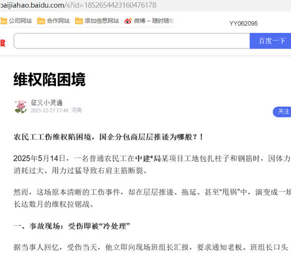 农民工工伤维权陷困境,国企分包商层层推诿为哪般?!