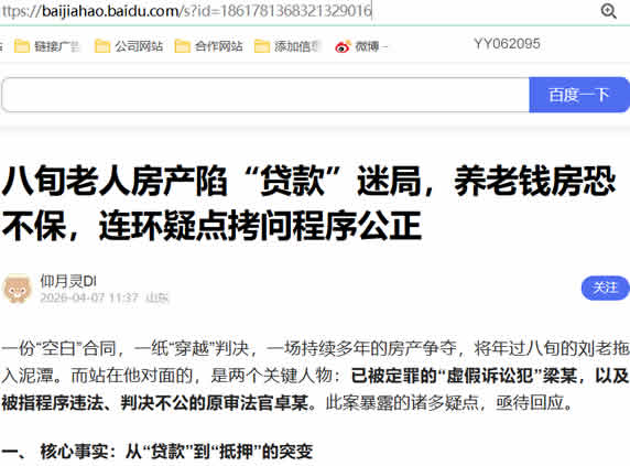 一份“空白”合同,一纸“穿越”判决,一场持续多年的房产争夺,将年过八旬的刘老拖入泥潭。而站在他对面的,是两个关键人物:已被定罪的“虚假诉讼犯”梁某,以及被指程序违法、判决不公的原审法官卓某。此案暴露的诸多疑点,亟待回应。